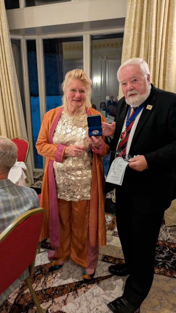 Council decided earlier in the year to instigate a Medal “The Steve Ellis Medal” in memory of my predecessor who had been Secretary for some 11 years and who tragically died suddenly just after our 2023 AGM. The medal will be awarded annually and the recipient will be chosen by The Past President, current President and Vice President. Recipients will be chosen for their sterling service to the Society or for advancing the knowledge base of members through the publication of ground breaking books or articles on the subject of Postal History. Claire Scott FRPSL has been made the first recipient of the Steve Ellis Medal as announced at the Banquet in Torquay on Saturday night. All agreed Claire was a worthy recipient for her unstinting service to the Society in a variety of roles for a very considerable time. She was deeply moved when she heard the news as she had been a good friend of Steve and still missed him very much.